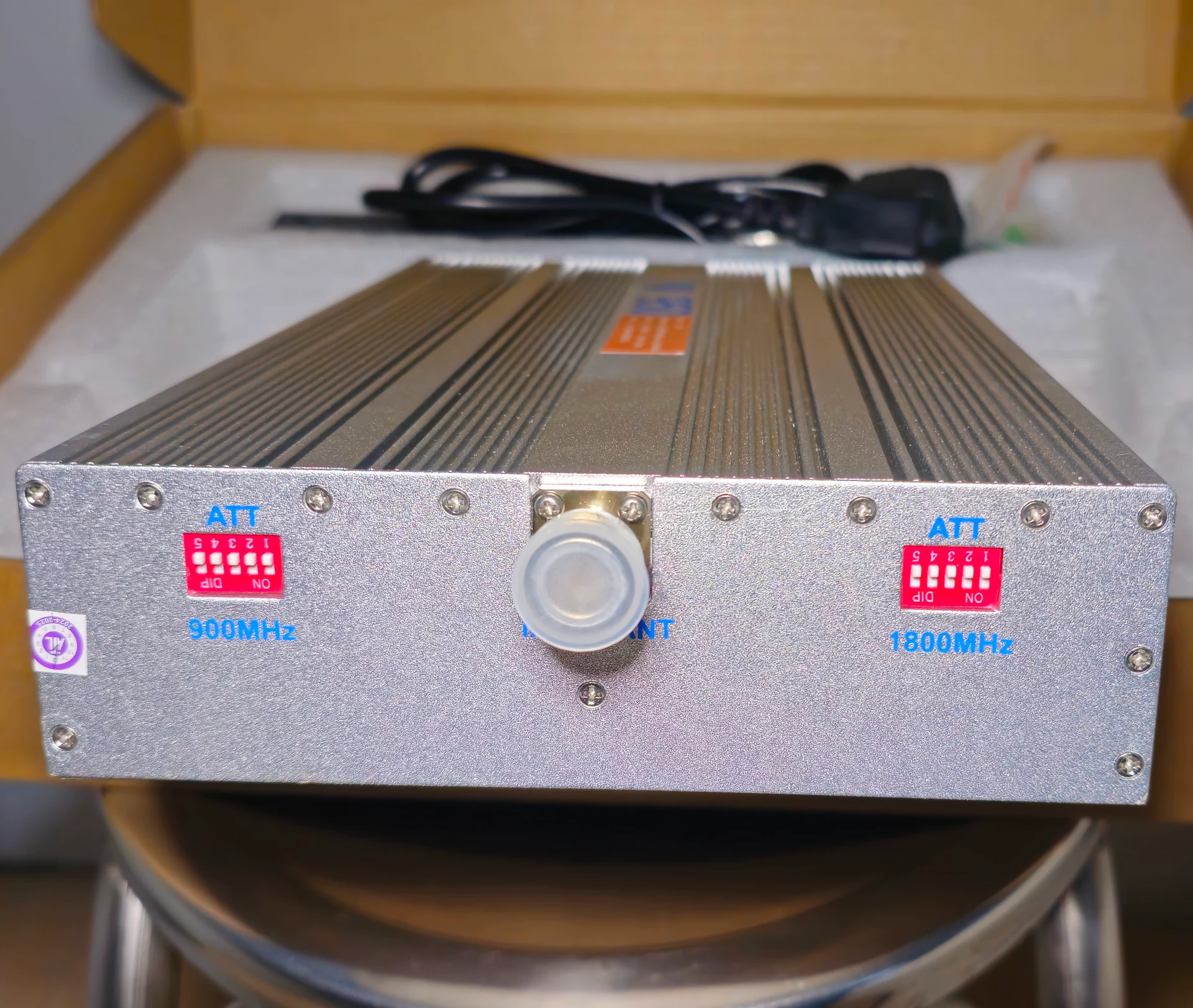 Repeater sinyal hp (telpon seluler) indoor merek W950 dual band dengan daya output sebesar 1.5 watt.